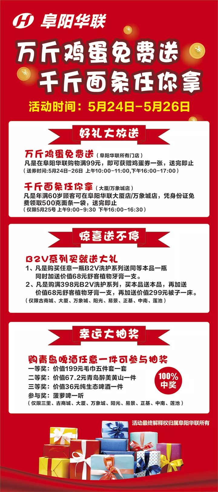 【阜陽華聯(lián)】免費(fèi)!一萬斤雞蛋一千斤面條,阜陽華聯(lián)不讓你空手而歸