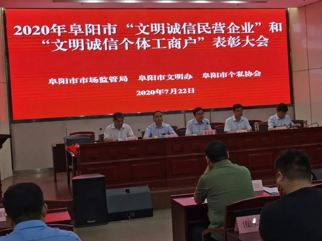 2020年阜陽市”文明誠信民營企業(yè)”和“文明誠信個(gè)體工商戶”表彰大會(huì),