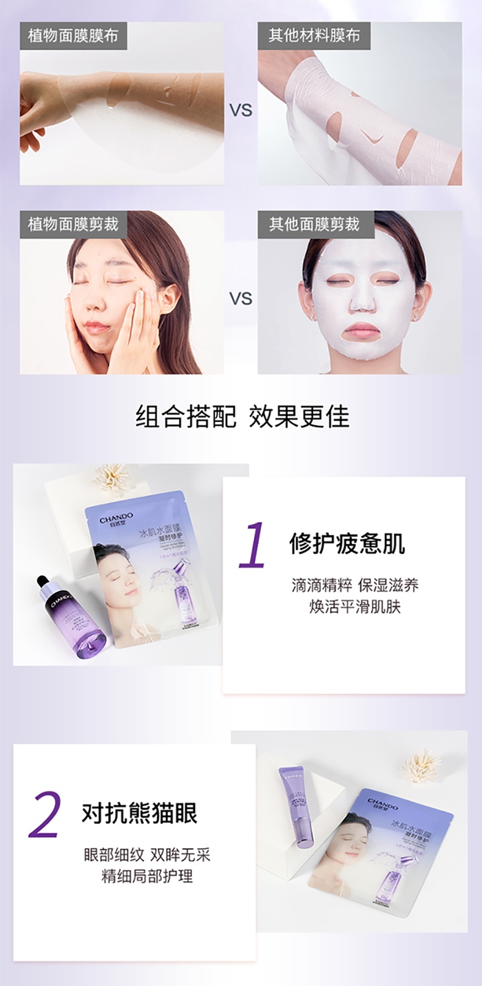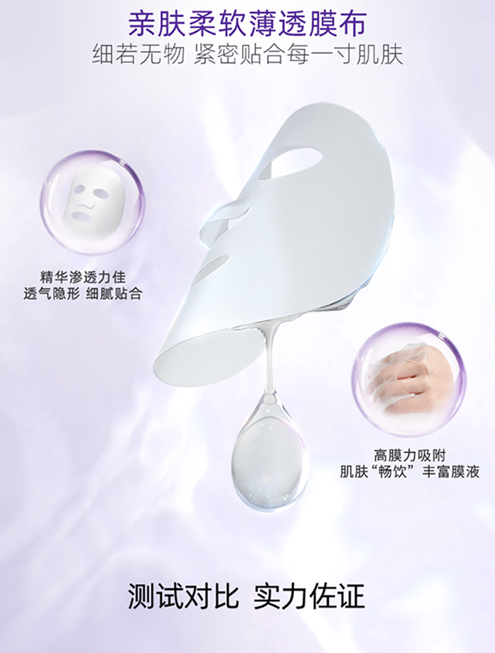 植物膜布,吸附力也大,適合干皮等肌膚,吸收后清洗,會(huì)感覺皮膚豐盈飽滿,補(bǔ)水又提亮。