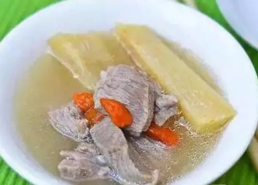 甘蔗羊肉湯溫補(bǔ)御寒,其中甘蔗中的蔗糖能起到調(diào)味的作用,亦可使湯鮮肉美。