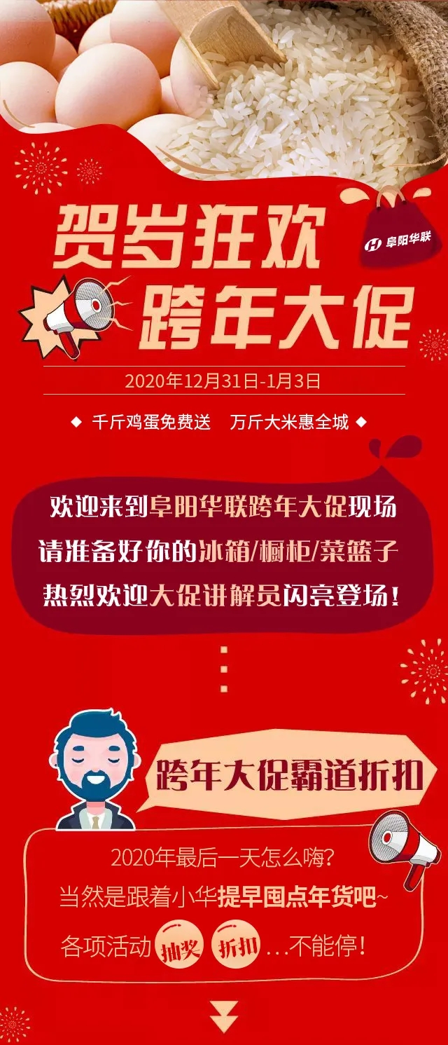 跨年大促|(zhì)阜陽華聯(lián)“千斤雞蛋免費送/萬斤大米惠全城”