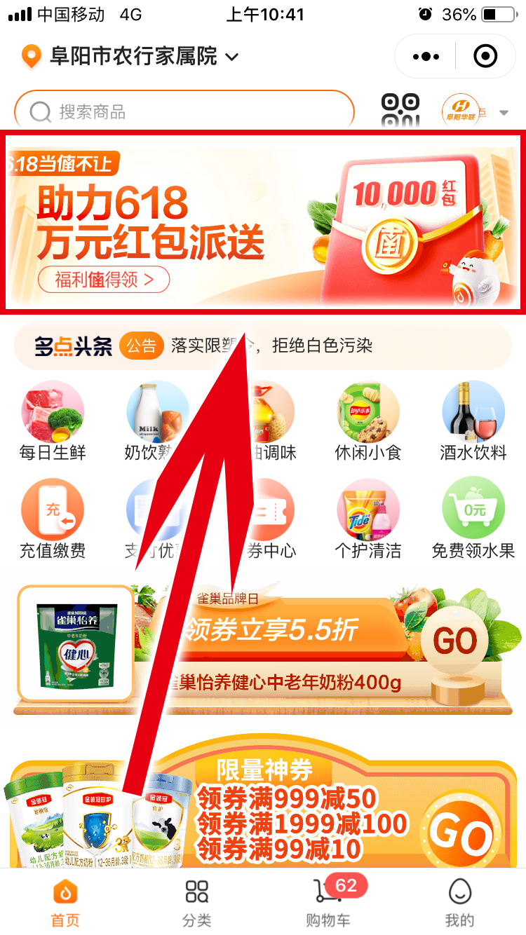 2、打開(kāi)多點(diǎn)小程序,首頁(yè)點(diǎn)擊進(jìn)入紅包專區(qū)查看中獎(jiǎng)結(jié)果,進(jìn)入活動(dòng)頁(yè)面進(jìn)行領(lǐng)取、提現(xiàn)。