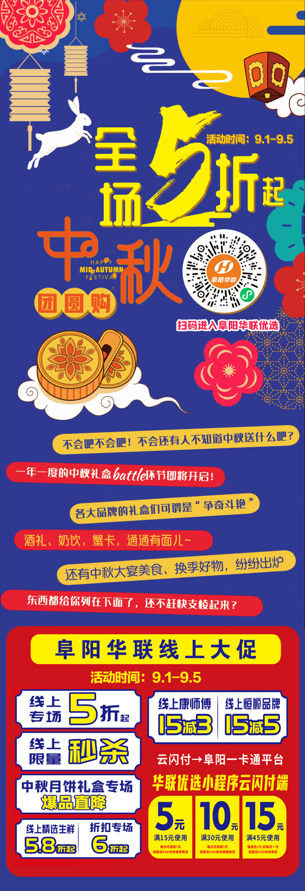全場5折起 | 阜陽華聯(lián)優(yōu)選“中秋團圓購”濃情開啟!